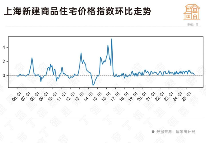 从具体城市来看,合肥、襄阳环比涨0.3%领涨全国,此外南京、贵阳涨幅均为0.2%。无论是同比还是环比,上海新房价格涨幅均为正,展现出较强的韧性,这已是上海新建商品住宅销售价格指数连续第76个月保持环比上涨或持平。如果把时间线拉长,可以看出,上海新房价格涨幅维持在0-1%之间,这是一个房价稳定的积极表现。